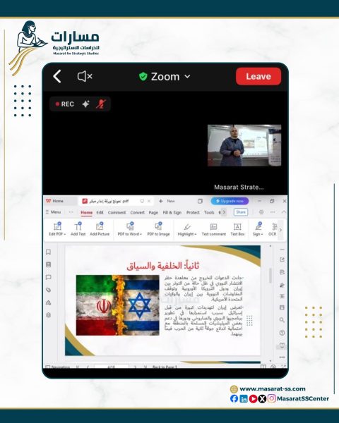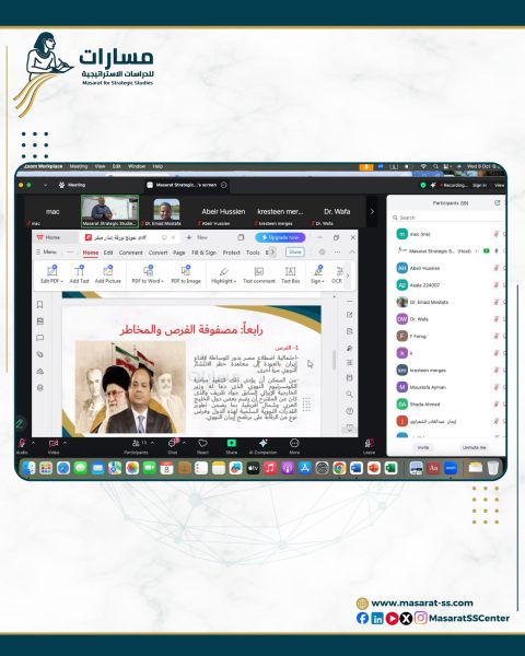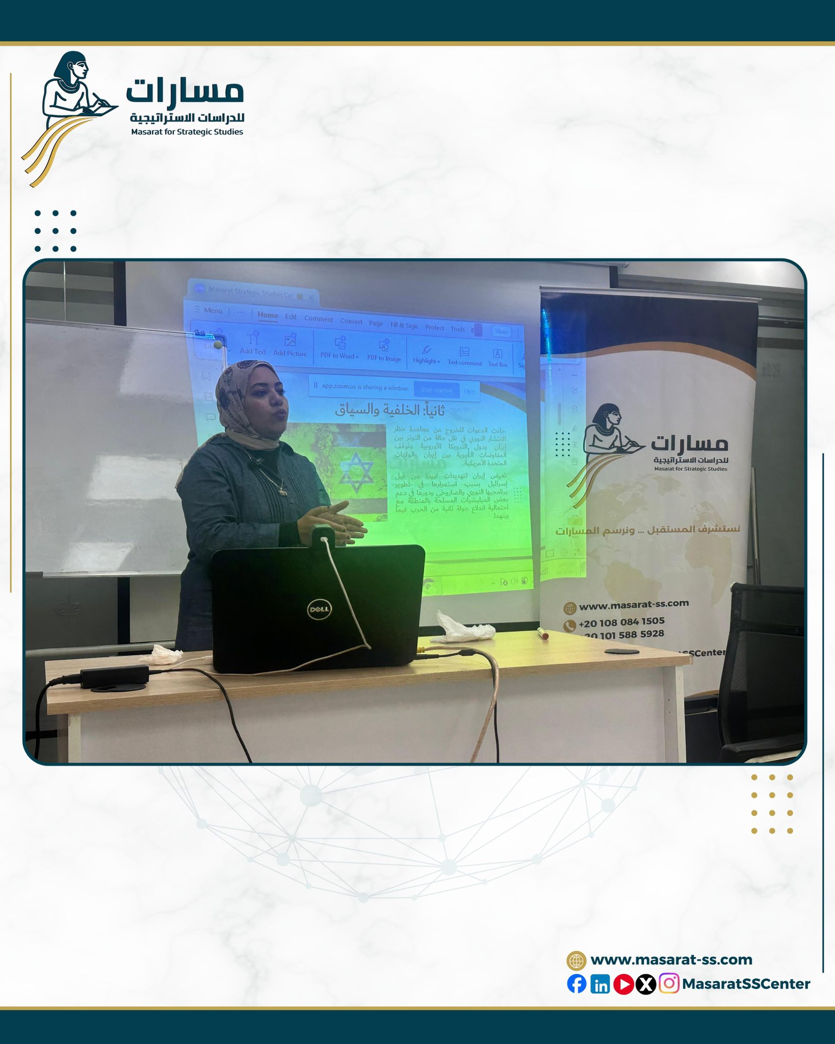 في سياق البرنامج التدريبي المتخصص في إعداد “أوراق الإنذار المبكر”، نظم مركز مسارات للدراسات الاستراتيجية جلسة تدريبية قدمتها د. مرفت زكريا، مديرة برنامج الدراسات الإيرانية بالمركز، وركزت خلالها على الجوانب التطبيقية للمحتوى النظري المُقدم في الدورة، وتضمنت الجلسة تمارين عملية تفاعلية، هدفت إلى تطوير مهارات المتدربين في تحليل المعطيات وصياغة أوراق تقدير الموقف بطريقة مهنية وواقعية، كما عرضت د. مرفت نموذجًا متكاملًا لـ”ورقة إنذار مبكر”، لخص المفاهيم والخطوات التي تم تناولها منذ بداية الدورة، مما مكن المشاركين من الربط المباشر بين الجانب النظري والتطبيقي.