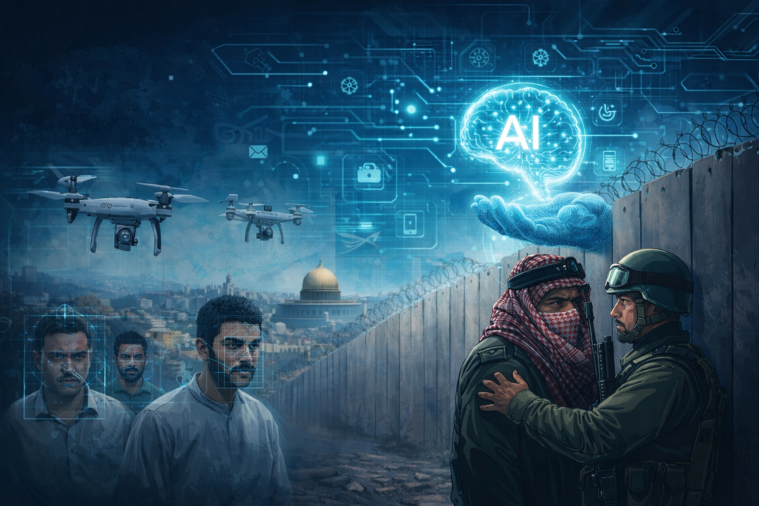 يتقاطع هذان البعدان الفصل العنصري والتطبيقات المتقدمة للذكاء الاصطناعي بشكل لافت لدى تحليل السياسات والممارسات الإسرائيلية في الأراضي الفلسطينية، إذ تبدو هذه الدولة في موقع مزدوج؛ فهي من جهة تطمح إلى المحافظة على مكانتها كمركز تكنولوجي متقدم على مستوى العالم، ومن جهة أخرى تستخدم هذه الأدوات التقنية في سياقات رقابية وأمنية تستهدف التحكم والسيطرة على الفلسطينيين وتحجيم حقوقهم الأساسية، لذلك تظهر أهمية الحاجة إلى فهم طبيعة توظيف الذكاء الاصطناعي خارج حدود الاستخدامات السلمية أو الاقتصادية التقليدية، عند توظيفه كجزء من آليات قمع منهجية تُعيد إنتاج أنماط الفصل والتمييز على أساس عرقي وسياسي.