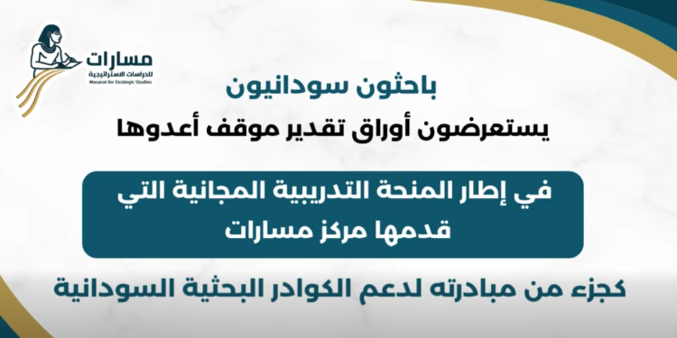 باحثون سودانيون يستعرضون أوراق تقدير موقف أعدوها في إطار المنحة التدريبية التي قدمها مركز مسارات للدراسات الاستراتيجية، وذلك ضمن مبادرته لدعم الكوادر البحثية السودانية.